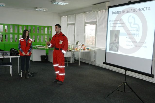 Поводом 31. јануара, Националног дана борбе против пушења, наша Мала школа здравља, едукативна радионица коју заједнички радимо са Црвеним крстом и Заводом за јавно здравље, реализовала је врло занимљив програм за ученике основних школа. Под мотом Цигарета животу смета Снежана Апостоловић, водитељ радионице и Богдан Јашовић, ученик Гимназије, одржали су краће предавање о штетности дувана, а затим су, уз помоћ младих активиста Црвеног крста Стефане Ђокић и Младена Вујића, са полазницима радионице реализовали веома забаван едукативни квиз на исту тему. |