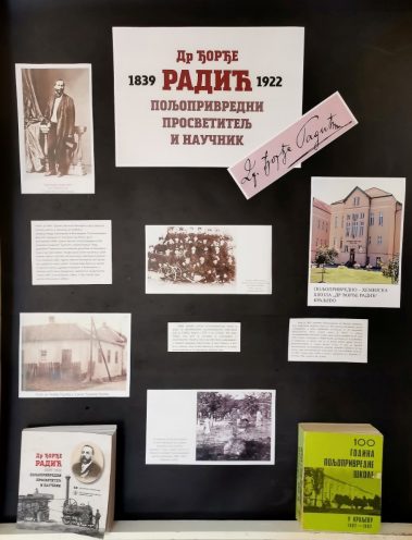 У настојању да скренемо пажњу на личности које су оставиле траг у културној историји Краљева, као и да представимо богату документарну грађу похрањену у фонду Завичајног одељења, у краљевачкој библиотеци приређена је изложба посвећена др Ђорђу Радићу, првом српском доктору агрономије и једном од најзначајнијих стручњака у овој области које је Србија имала на прелазу из XIX у XX века. Премда рођен у Великом Бечкереку (Зрењанин), те школован у Карловцима, Винковцима, Оравици и Прагу, Ђорђа Радића памтимо и помињемо као знамениту завичајну личност, с обзиром на то да је половину свог живота, од 1882. године, до смрти, 1922. живео и радио у Краљеву. Указом краља Милана од 29. јуна 1882. године, основана је школа за ратарство у Краљеву, а за управника је именован др Ђорђе Радић. Остатак свог радног века Радић је посветио развоју и напредовању школе, која од 10. децембра 1990. године носи његово име.