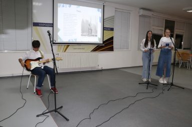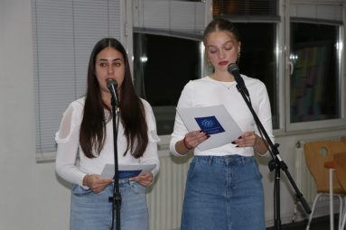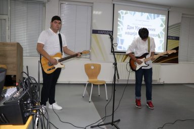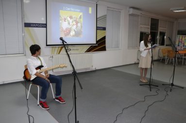 Пригодне књижевне текстове Св. Саве, Стефана Првовенчаног и Николаја Велимировића казивали су Наталија Миличић, Павле Стајић и Јелена Минић. Музички део програма осмислили су и извели Милица Алексић, Јаков Ракић и Огњен Трајковић, ученици Гимназије и полазници школе Рок планета. Чули смо уводни инструментал, песму „Молитва“ (Партибрејкерс) и песму која је написана пре скоро 50 година и која је данас својеврсна химна миру „Imagine“ (Џон Ленон).