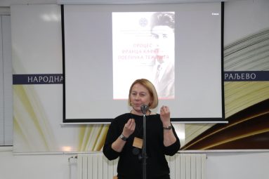 Поводом 100. годишњице смрти Франца Кафке, у оквиру програмског циклуса „Великани светске књижевности”, др Јелена Костић Томовић, редовни професор на Катедри за германистику Филолошког факултета Универзитета у Београду, одржала је предавање на тему „Процес Франца Кафке – поетичка тежишта”. Овим критичким освртом на роман којим је стекао глобалну препознатљивост и књижевну славу, Кафки је учињен својеврсни омаж као једном од најаутентичнијих књижевних аутора XX века. Др Костић Томовић је најпре указала на значајне појединости Кафкине личне и породичне историје која је утицала на његово формирање, посредно и на његово стваралаштво. Истакнуто је да је Кафка рођен 1883. године у Прагу, у ондашњој Аустроугарској монархији, у породици јеврејских корена. Писао је на немачком језику и припада корпусу немачке националне књижевности. Поетички је учвршћен у књижевној епохи авангарде, а идејним и семантичким слојевима свог дела утицао је на књижевна усмерења појединих класика светске литературе попут Албера Камија и Жана Пола Сартра. Говорећи о роману „Процес”, др Костић Томовић је нагласила да је реч о делу које је отворено за мноштво интерпретација и разумевања, али промишљање о делу доминантно обележава атмосфера апсурда, отуђености и опште дехуманизације света. Као нарочити квалитет овог дела истакнут је приповедачки манир који карактерише згуснута, али за читаоца лако проходна нарација утемељена на модерном језичком изразу који одише свежином и у садашњем тренутку.