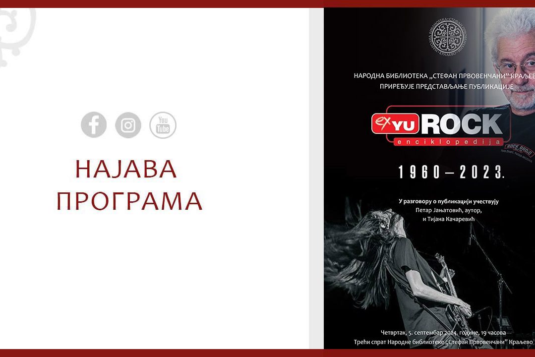 У четвртак, 5. септембра 2024. године, у 19 часова, у Народној библиотеци „Стефан Првовенчани” Краљево биће приређено представљање публикације „EX YU ROCK ENCIKLOPEDIJA 1960–2023”, аутора Петра Јањатовића, музичког новинара и критичара. Реч је о петом, допуњеном издању ове култне публикације, којом је сагледана југословенска рок сцена у периоду од 1960. до 2023. године. У односу на прво издање објављено 1998. године, енциклопедија садржи тридесет нових одредница. Ова публикација представља основу за упознавање једног од најутицајнјих видова масовне културе.