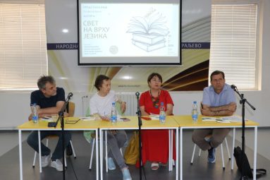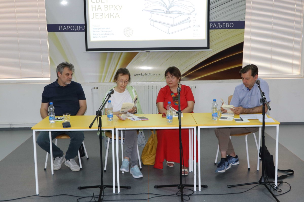 У четвртак, 19. јуна, у 19 часова, НБ „Стефан Првовенчани” приредила је књижевни програм под називом Свет на врху језика. Реч је о представљању нових песничких књига Марије Кнежевић (Мета), Биљане Дојчиновић (Кнедле за супу) и Александра Шаранца (Из снега у снег), објављених у библиотеци Поезија, данас, Издавачке делатности Повеља. Поменути аутор и ауторке први пут су се представили краљевачкој читалачкој публици, а разговор с њима водио је главни и одговорни уредник Издавачке делатности, књижевник Дејан Алексић. У уводној речи поменуте су њихове поетичке сличности, али је истакнуто оно што њихову поезију обележава посебношћу. Програм је концепцијски био осмишљен као наизменично читање стихова и разговорних сесија, с циљем да се осветле главне тачке стваралачких интенција, кључни тематски кругови и врсте песничких поступака. Отворене су теме песничког искуства и утицаја лектире, као и питање места поезије у савременој култури, суштински обележеној свеколиким превредновањима и феноменом постисторијског времена. На крају програма, ауторке и аутор су заинтересованим посетиоцима потписивале своје новообјављене књиге.
