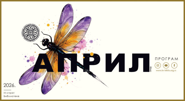 Понедељак, 6. април 2026. године, 18 часова У сарадњи са Заводом за заштиту природе Србије Представљање едиције Заштићена природна добра Србије мр Данко Јовић, др Марина Илић, Милош Радаковић, др Ненад Секулић, Александра Дошлић, Данка Спасојевић Отварање изложбе Вилински коњици Србије Аца Ђурђевић, аутор У понедељак, 6. априла 2026. године, у 18 часова, у