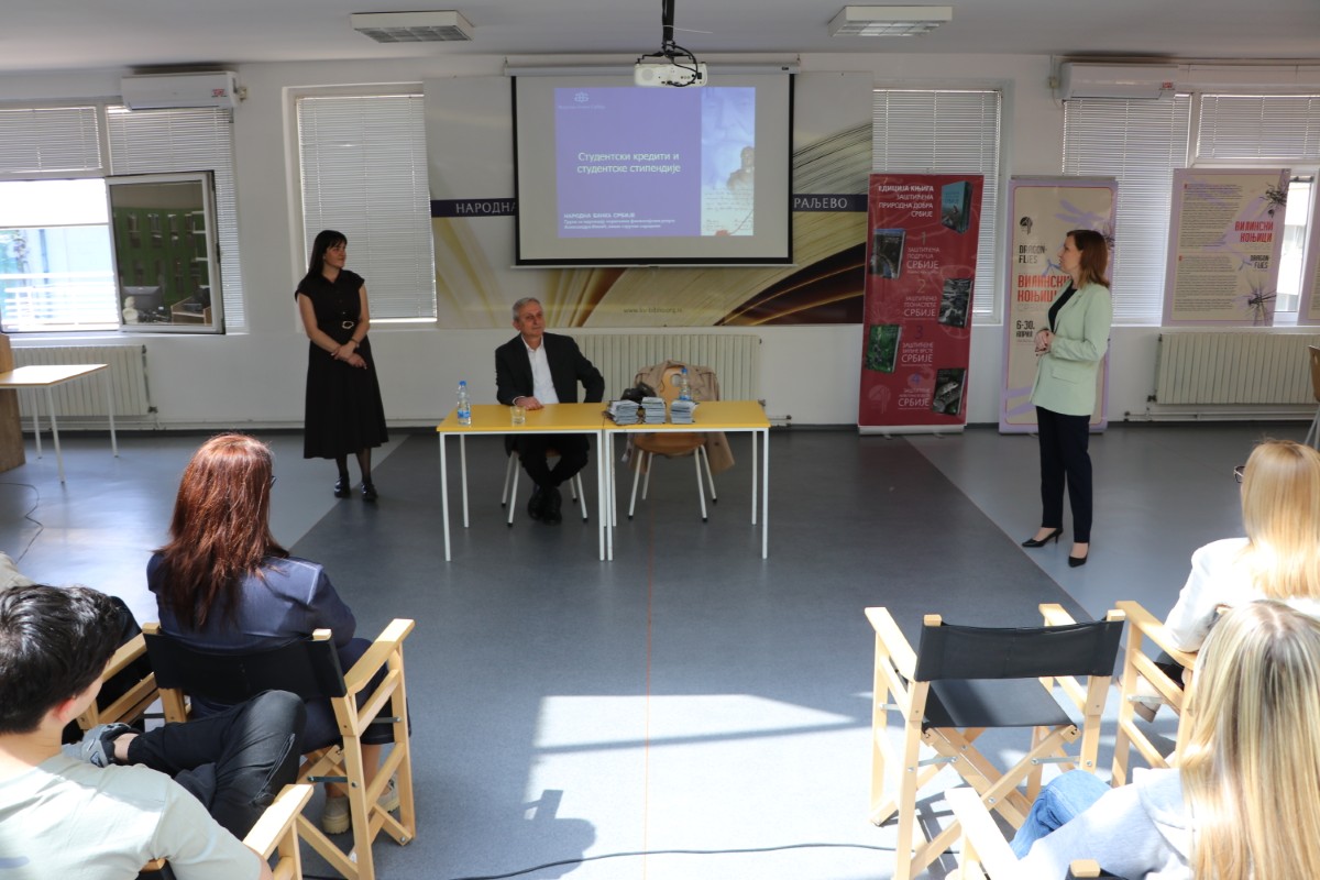 У оквиру серијала „Мала школа финансија“, у Библиотеци су одржана два едукативна предавања. Банкарски стручњаци Народне банке Србије из филијале у Крагујевцу, Александра Живић и Срећко Карановић, уз видео презентације говорили су о студентским стипендијама и кредитима и упознали средњошколце како да управљају својим финансијама. Основни циљ одржавања ових трибина је да се средњошколска омладина упозна са финансијским производима и услугама које ће ускоро користити као и са потенцијалним ризицима које они носе.