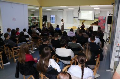 Трибини је присуствовао велики број ученика средњих школа који су са изузетном пажњом пратили предавање.