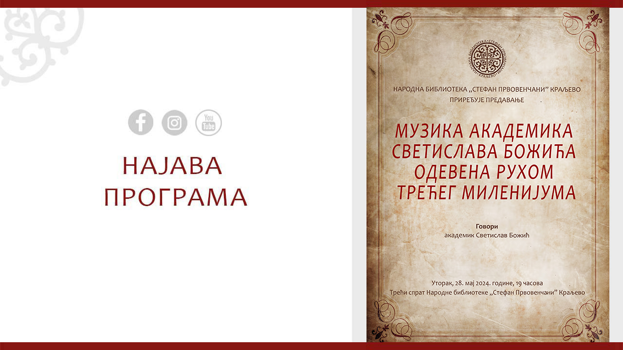 ПРОГРАМИ ОПИС 2024. Понедељак, 3. јун 2024. године, 11–14 часова У понедељак, 3. јуна 2024. године, у периоду од 11 до 14 часова, поводом 220. годишњице подизања Првог српског устанка, у Народној библиотеци „Стефан Првовенчани” Краљево биће одржан квалификациони круг квиз такмичења „Краљево бира знање”. Реч је о партнерском едукативном програму Друштва историчара Рашког